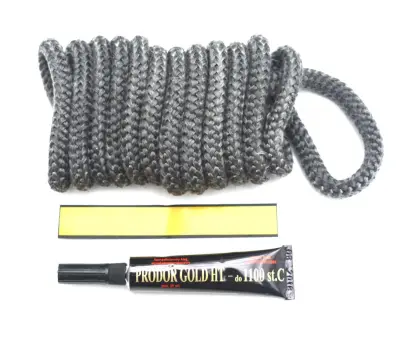 keramická těsnicí šňůra pro kamna a sporáky, s lepidlem do 1100 °C, délka šňůry 2,5 m, tloušťka 10 mm, objem lepidla min. 20 ml