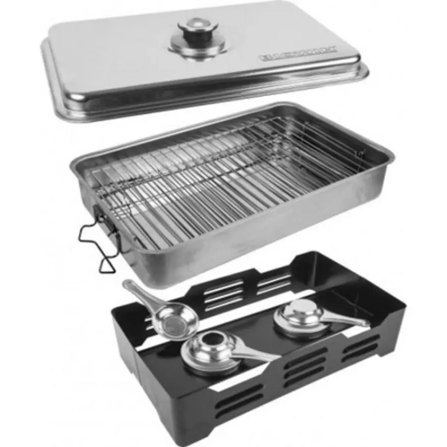 43x28 cm, nerezový pekáč, gelové palivo, piliny (třísky cca 400 g) v balení, kov, víko s teploměrem