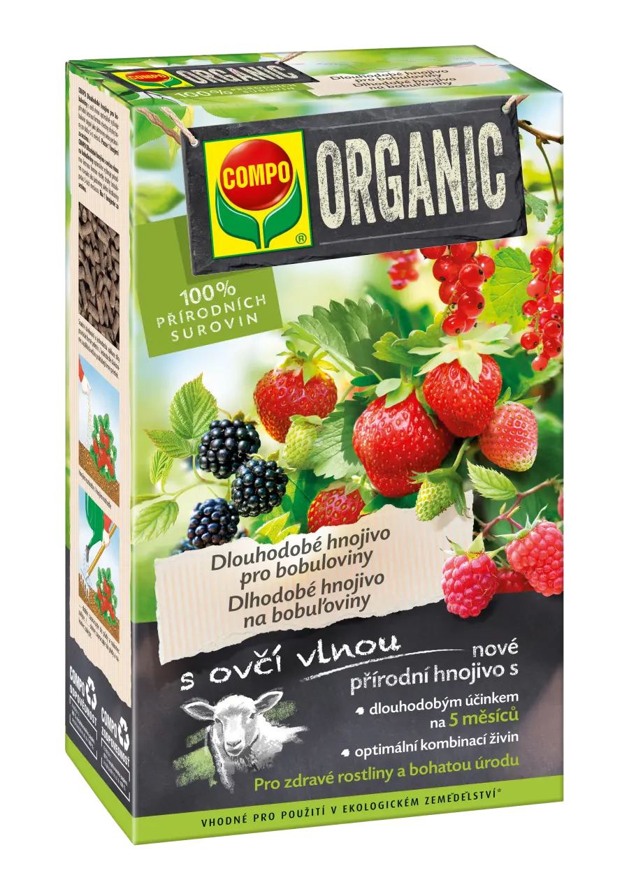 Hnojivo univerzální dlouhodobé pro bobuloviny s ovčí vlnou 780g. Compo