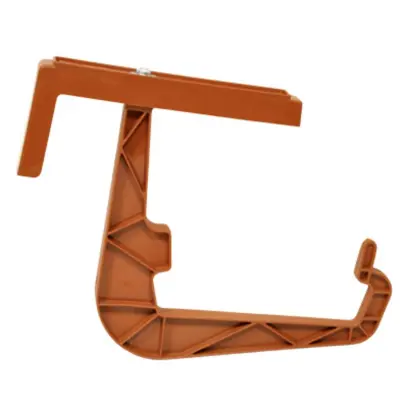 plast, nastavitelný, barva terakota, vhodný pro truhlík do šířky 13 cm, zábradlí do 12,5 cm, miska pod truhlou max. rozměry - výška 3 cm, šířka nahoře 15 cm, dole 14 cm (vhodné misky z naší nabídky s kódy 36815517 až 36815524).