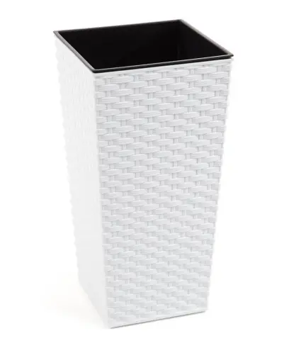 plastový květináč- obal, s vnitřní vložkou, rozměr 25x25cm, výška 25 cm, hloubka 23cm, imitace ratanu, barva bílá