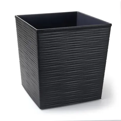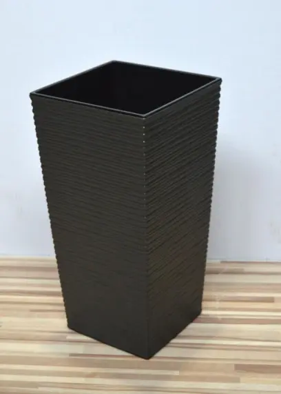 plastový květináč- obal, 19x19 cm, spodek zúžený na 14,5x14,5 cm, hloubka vložky 17 cm, celková výška 37 cm, proužkový reliéf, barva grafit