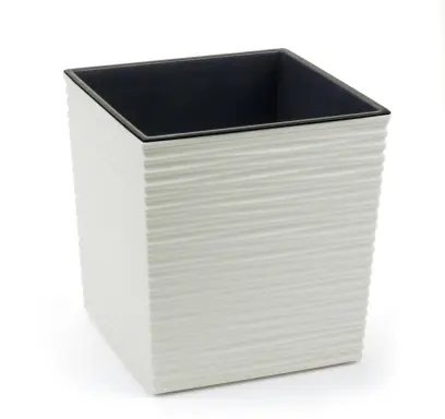 plastový květináč - obal, s vnitřní vložkou - velikost 17x17 cm, celková výška 19,5 cm, vroubkovaný povrch, barva bílá