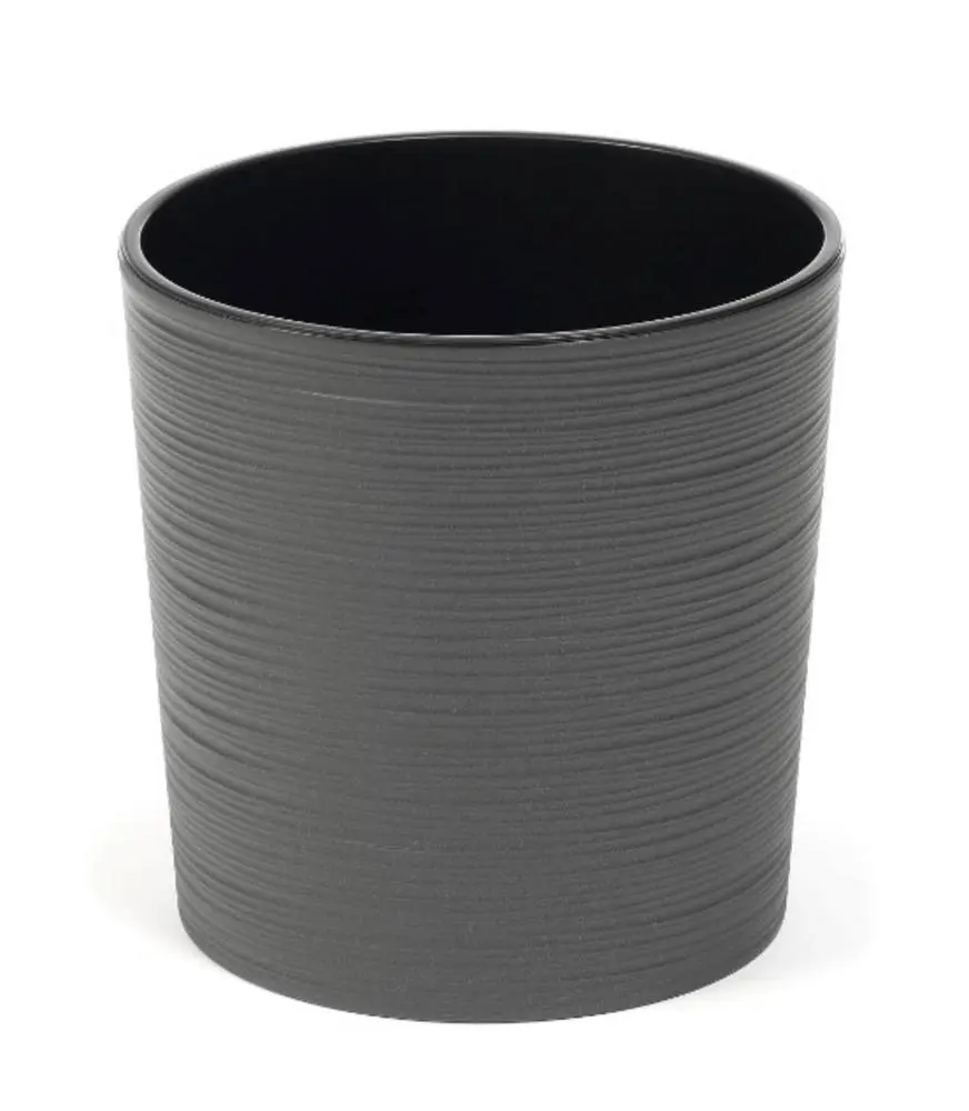 plastový květináč- obal, s vnitřní vložkou, průměr 19 cm, výška 19,5 cm, vroubkovaný povrch, barva grafit