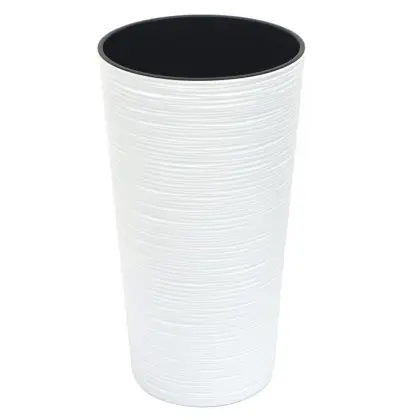 plastový květináč s vnitřní vložkou, průměr 19 cm, výška 19,5 cm, vroubkovaný povrch, barva bílá