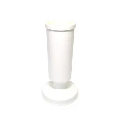 Plastová váza o průměru 11 cm a výšce 32 cm. Bílá barva, se zátěží.