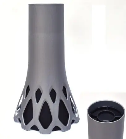 Plastová váza o průměru 11 cm a výšce 32 cm. Černá barva, se závažím