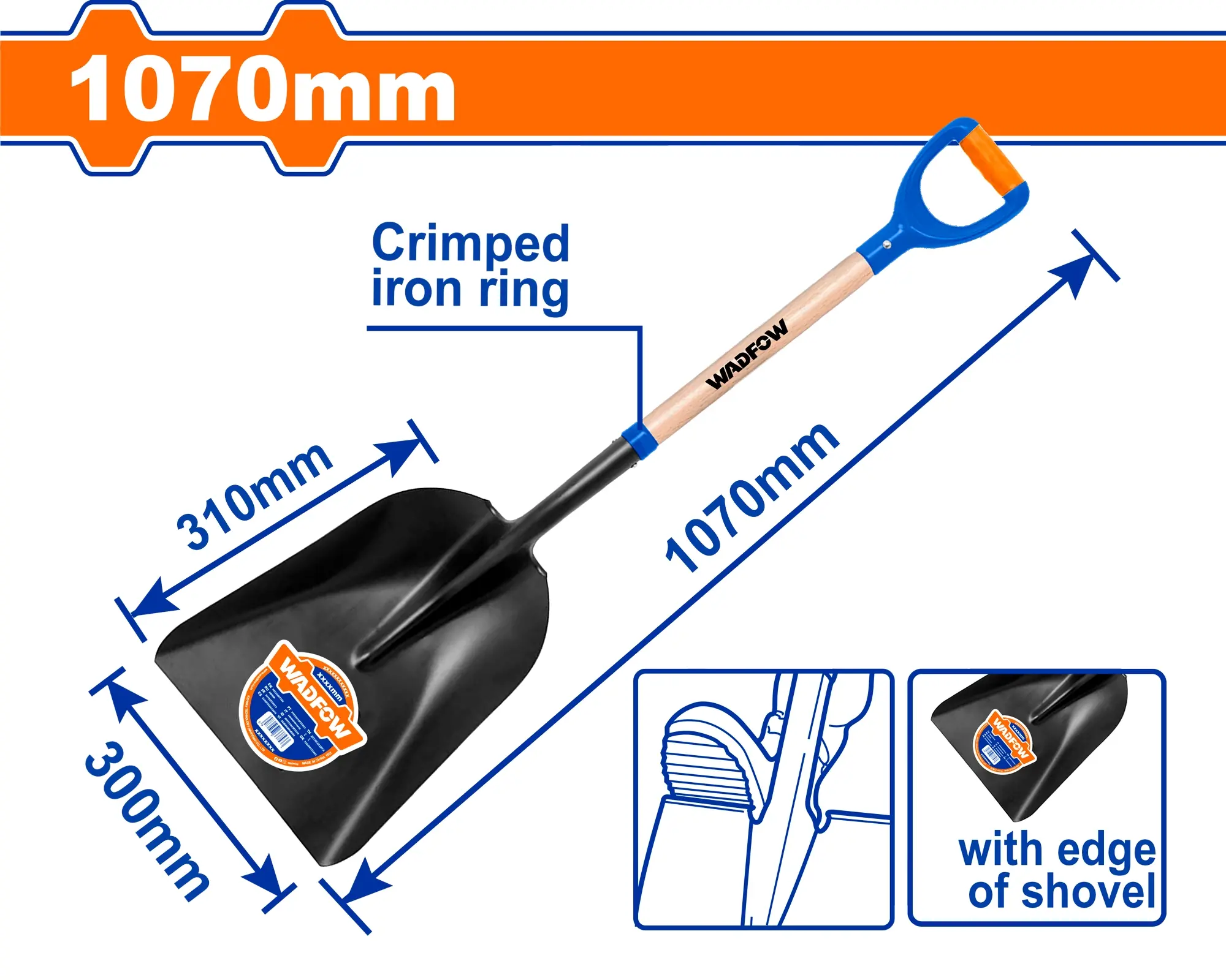 Lopata o délce 1070 mm je vybavena ohnutou plastovou rukojetí, která zajišťuje ergonomické držení a snadný přístup k nabíranému materiálu. Hlava lopaty se rozměry 300 × 310 mm s tloušťkou 1,5 mm poskytuje optimální poměr mezi kapacitou a lehkostí. Vhodná pro nabírání písku, štěrku, hlíny a dalších sypkých materiálů