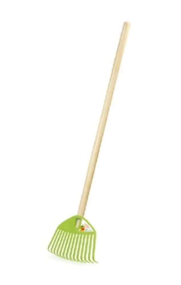 dřevěná násada, plastové hrábě, celková délka 71 cm, zelená barva