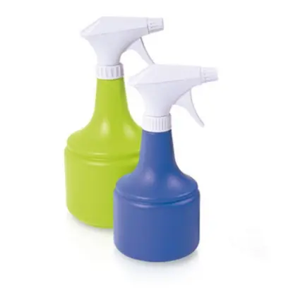 plastový rozprašovač na vodu o celkovém objemu (včetně hrdla) 0,6 l a výšce 21 cm.