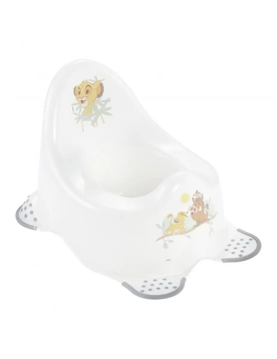 Nočník s moderním, anatomickým tvarem a pryžovými nožičkami, které zajišťují stabilitu. Přátelská grafika s oblíbenými postavičkami z kresleného filmu Lví král je umístěna pomocí moderních technologií, takže se neopotřebuje. Produkt vyroben z vysoce kvalitních materiálů.