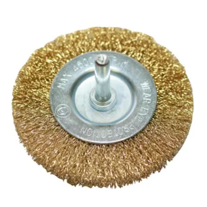 rotační kartáč, vlnitý se stopkou, mosazný drát, pozinkované tělo, průměr kartáče 63 mm, tloušťka drátu 0,30 mm, délka drátu 15 mm, max. 4500 ot/min, používá se k leštění, zdrsňování, odstraňování rzi apod.