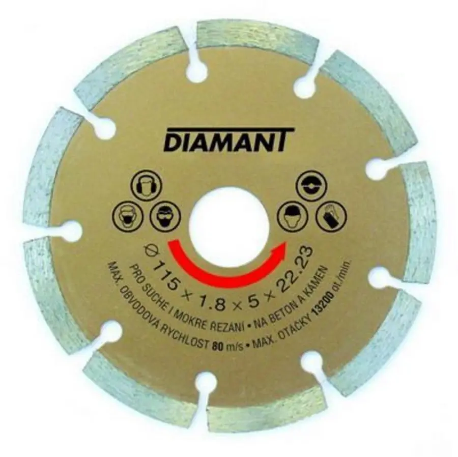 diamantový segmentový kotouč pro suché a mokré řezání, 125 mm, pro řezání betonu, kamene, cihel, do hloubky řezu cca 20 mm