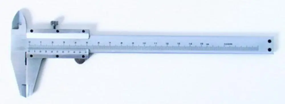 posuvné měřítko 0-150 mm, přesnost 0,02 mm, nerezová ocel, má metrickou stupnici v mm, hloubkoměr, plynulý posuv, s pouzdrem