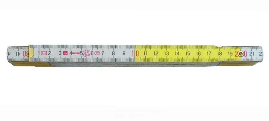 dřevěný, skládací, délka 1 m, oboustranná stupnice v mm