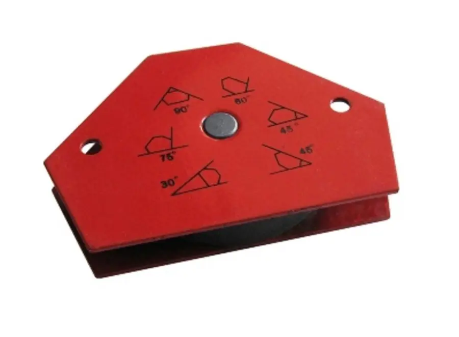 kovový úhlový magnet 137x110mm, používaný jako pomůcka při svařování pod danými úhly