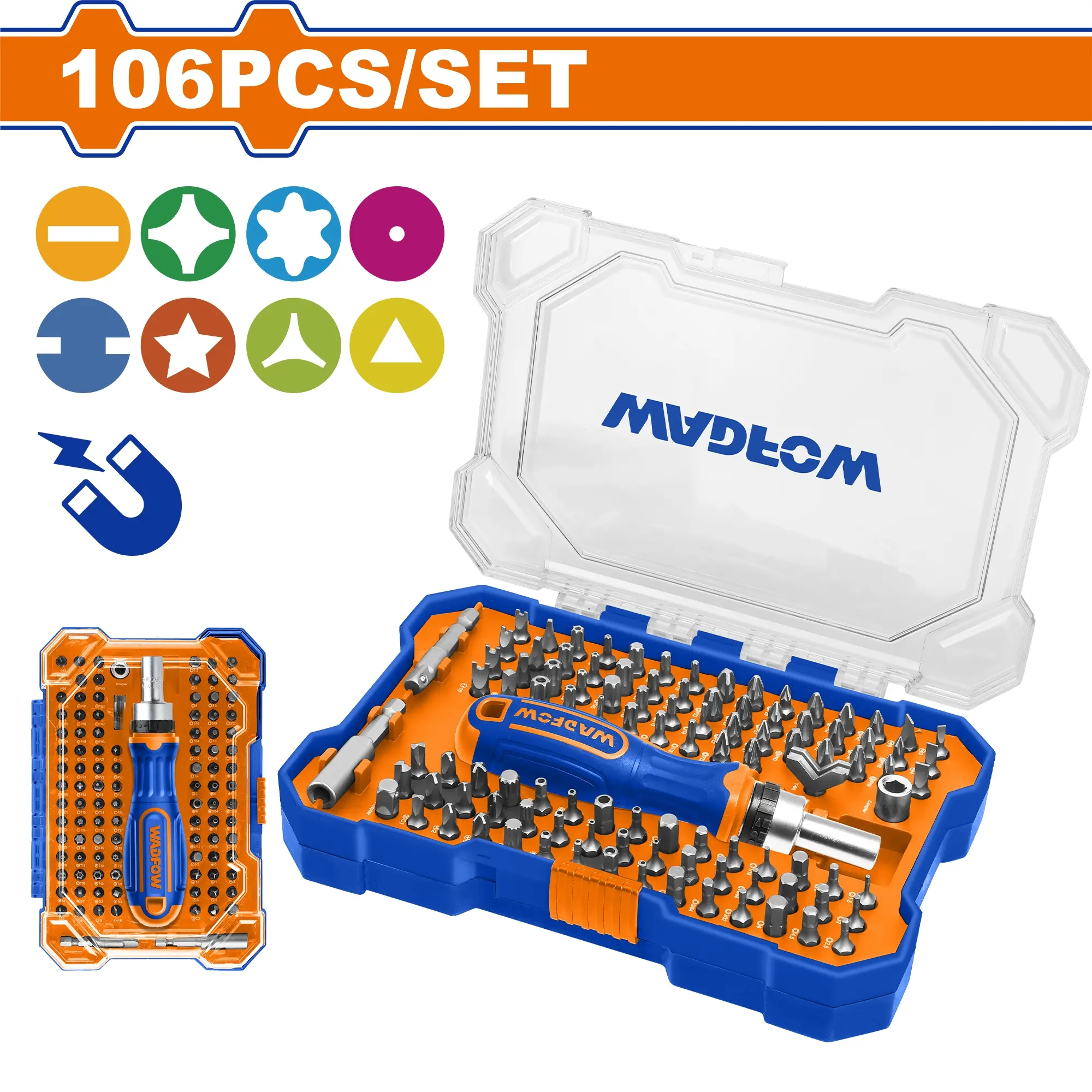 Šroubovák ráčna + bity sada 106 ks – vše na jednom místě