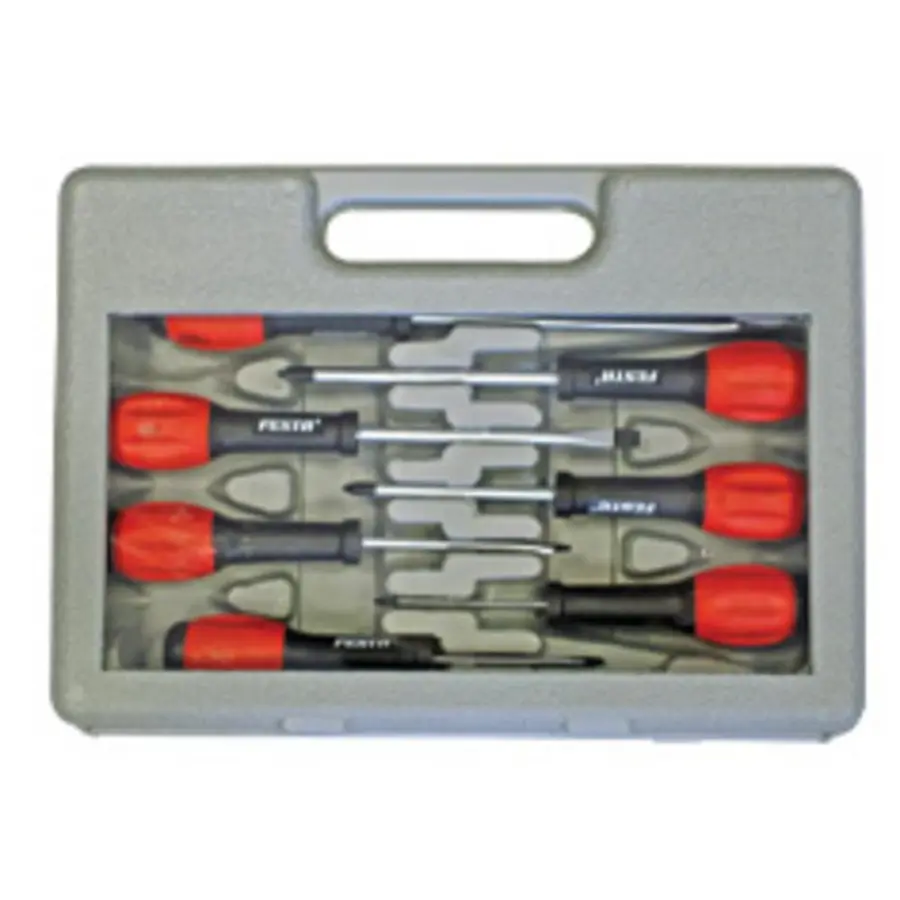 7dílná sada šroubováků v praktickém plastovém pouzdře, vyrobená z chrom-vanadiové oceli, s kaleným magnetickým hrotem, kombinace polypropylenu a pryže na rukojeti, která má protiskluzové vlastnosti.
