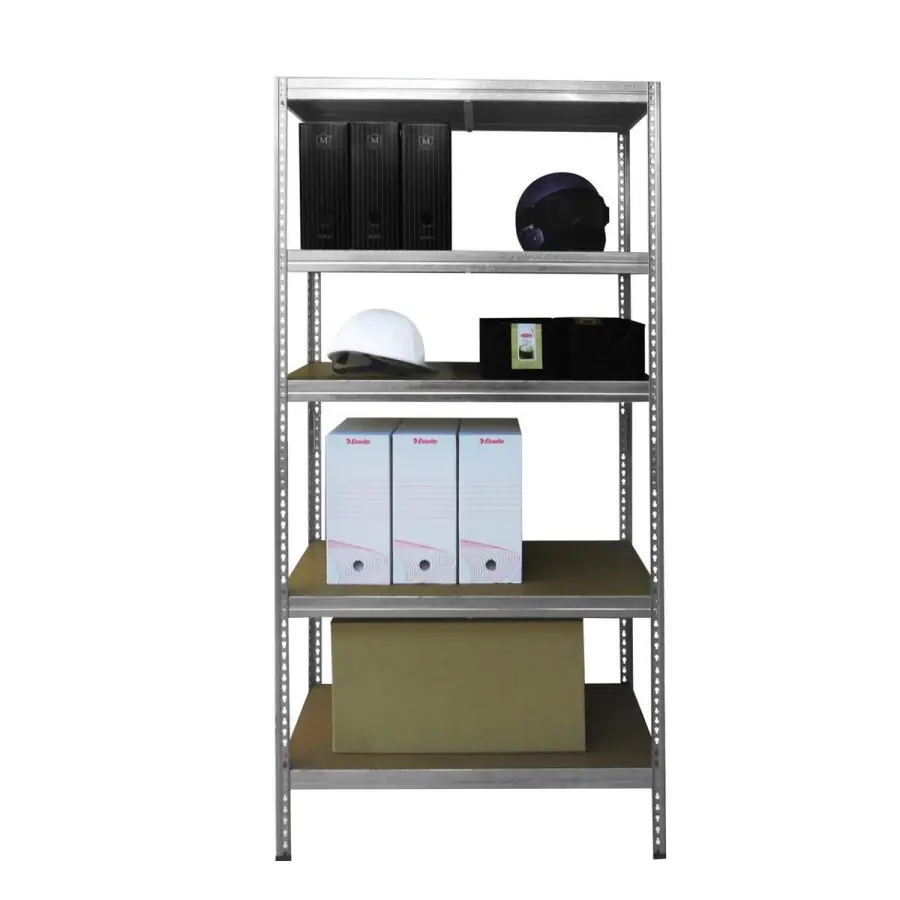 kovový, rozměr min 180x75x35 cm, 5ks polic, police nosnost 175kg, lisované dřevo - MDF deska, snadná montáž