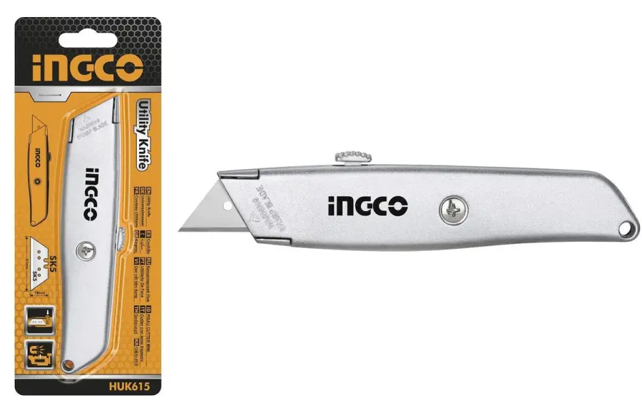 Univerzální nůž s vyměnitelnou čepelí, tělo ze slitiny zinku, tloušťka čepele 19 mm, včetně 1x čepele SK5, ergonomicky tvarovaná rukojeť.