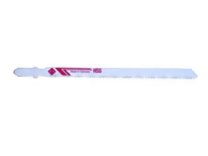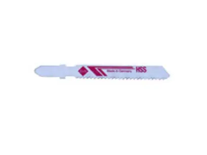 přímočarý pilový list z oceli, pracovní délka 50 mm, tloušťka 1 mm, rozteč zubů 1,2 mm, je určen pro měkkou ocel, nerezovou ocel do tloušťky 2 mm, neželezné kovy, pro řezání oblouků, tvrzených plastů do tloušťky 4 mm, plexiskla do 8 mm atd.