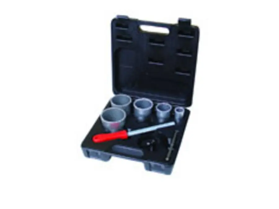 Sada vykružovacích korunek do keramických obkladů a dlaždic o průměru 33mm, 53mm, 67mm, 73mm, 83 mm + univerzálním unašečem a speciálním vodícím vrtákem.