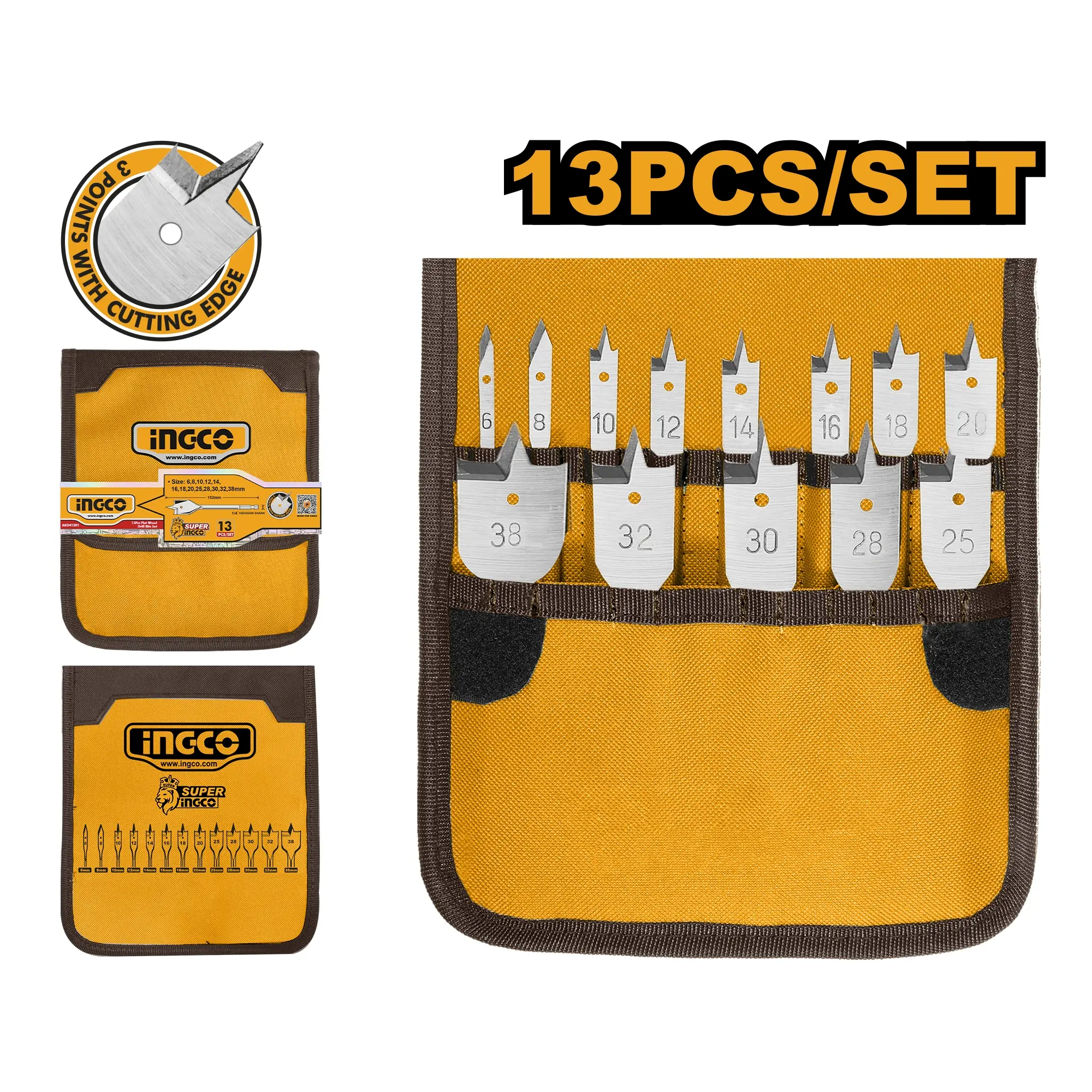 Tato rozsáhlá sada 13 kusů plochých vrtáků (často nazývaných "lopatkové" nebo "frézovací") je ideálním řešením pro rychlé vrtání čistých otvorů větších průměrů do měkkého i tvrdého dřeva, dřevotřísky nebo sádrokartonu. Je perfektní pro tesařské práce, instalace zámků, vedení kabeláže nebo trubek.