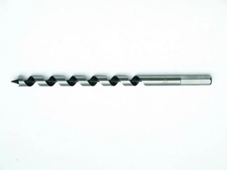 kvalitní hadovitý vrták průměru 18mm, délky 600mm, do dřeva, s šestihranou stopkou zabraňující přetáčení, pro vrtání přesných děr větší hloubky