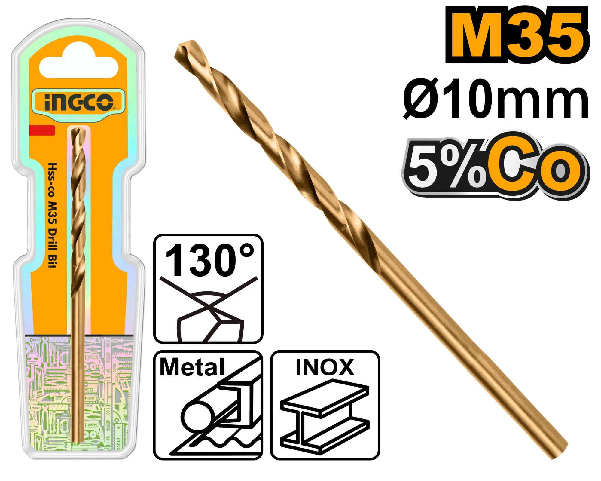 Vysoce výkonný vrták o průměru 10 mm je vyroben z kvalitní rychlořezné oceli s příměsí 5% kobaltu (norma M35), což z něj činí nepostradatelný nástroj pro vrtání do extrémně tvrdých a houževnatých materiálů. Kobaltová slitina zajišťuje vynikající tepelnou odolnost a tvrdost, díky čemuž vrták snadno proniká nerezovou ocelí (nerez), kyselinovzdornou ocelí, pružinovou ocelí či litinou.