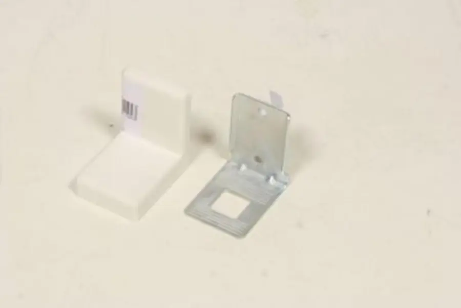 kovový držák s bílým plastovým krytem, tvar L, velikost 50x40mm do L, určený pro závěsné skříňky, balení 50ks a 20ks