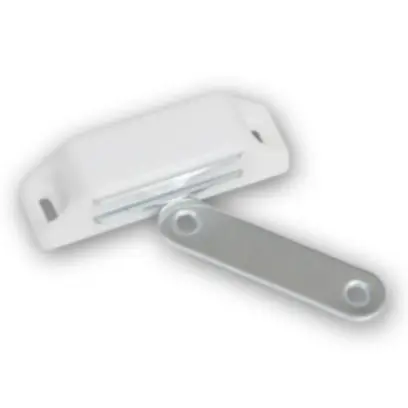 magnetka na dveře, bílá délka 6 cm, pro zavření dvířek na magnet, s protikusem