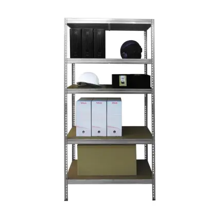 5patrové nastavitelné úložné police Velikost produktu: Š900 mm x D400 mm x V1800 mm Nosnost každé police: 175 kg (zboží musí být umístěno rovnoměrně) Materiál: MDF deska a pozinkovaný ocelový rám Tloušťka MDF desky: 4 mm Tloušťka ocelového rámu: 0,60